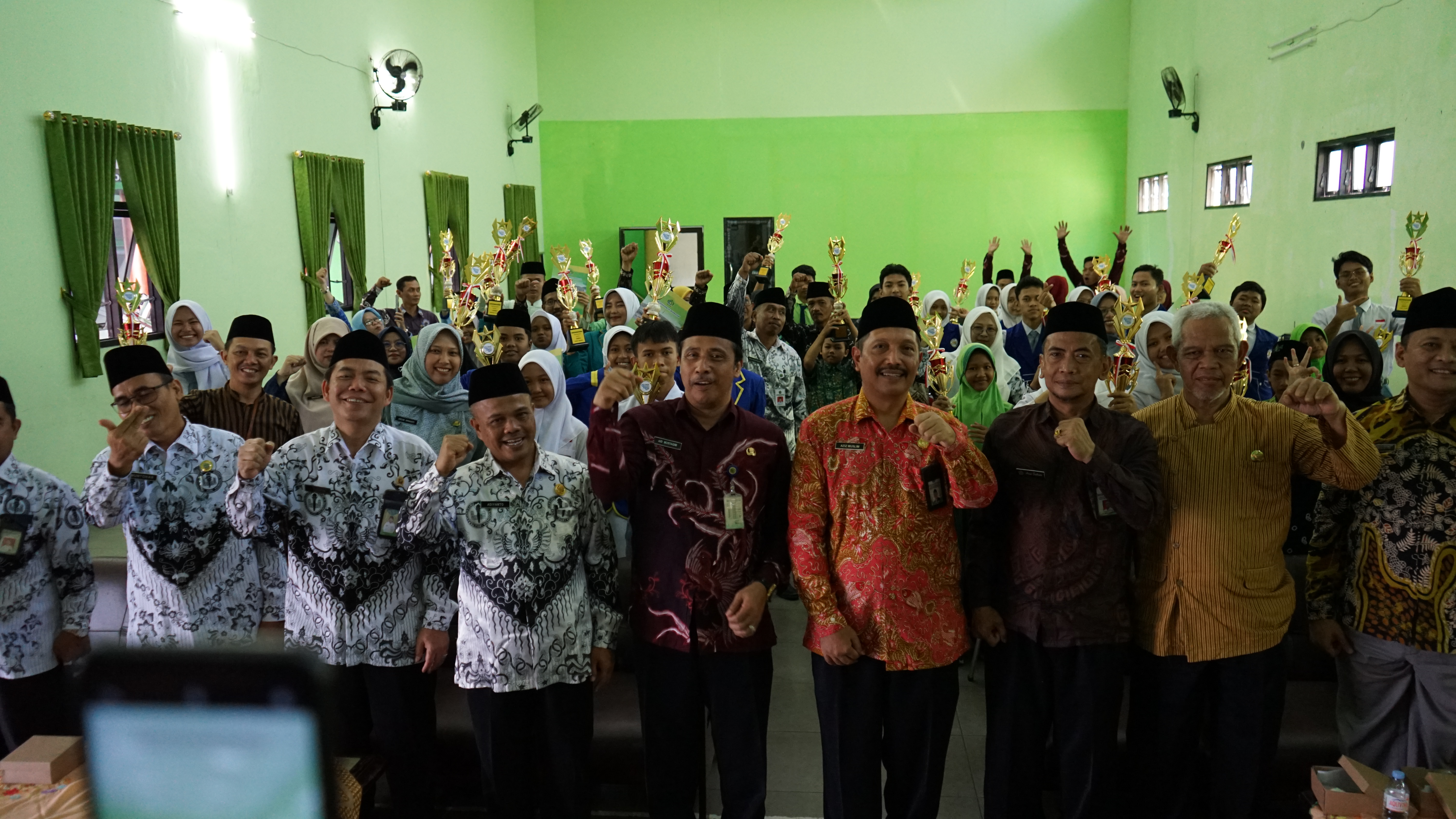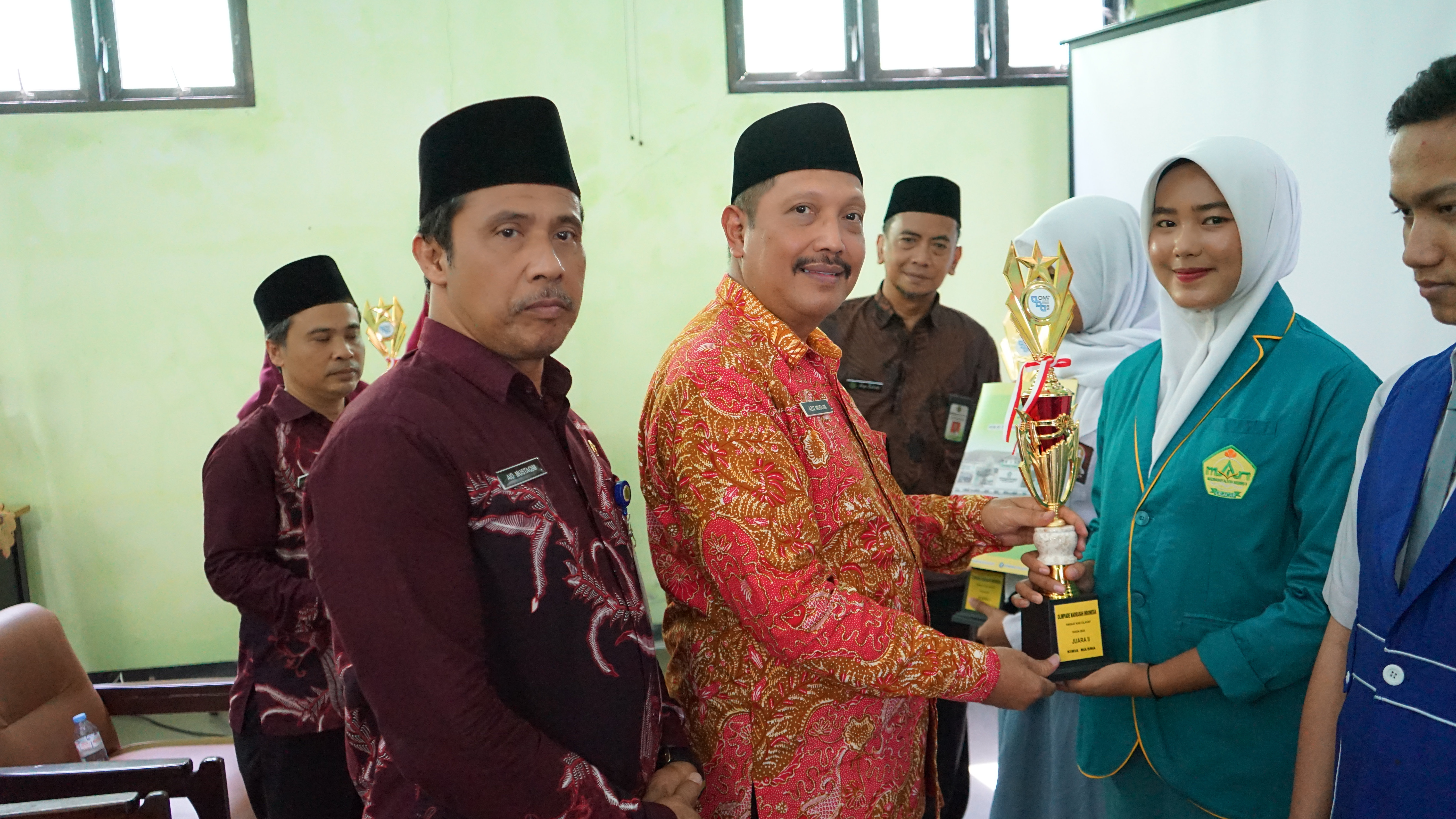 Pada hari ini Kamis (25/9/2025) para juara OMI menerima tropi dan piagam penghargaan dari Kantor Kementerian Agama Kabupaten Cilacap. Tropi dan penghargaan diserahkan langsung oleh Kepala Kantor Kementerian Agama Kabupaten Cilacap, H. Aziz Muslim dengan didampingi Kasi Pendidikan Madrasah. Acara yang berlangsung di aula Kantor Kementerian Agama Kabupaten Cilacap dihadiri oleh para Kepala Madrasah, Pengawas Madrasah, Guru pendamping dan siswa juara satu, dua, tiga, dari masing masing cabang lomba. A’id Mustakim, M.Ag dalam laporan menyampaikan bahwa penyelenggaraan Olimpiade Madrasah Indonesia diikuti oleh 1.241 peserta yang terdiri dari 620 siswa MI, 346 siswa MTs, dan 275 siswa MA mengusung tema “Islam dan Teknologi Digital: Inovasi Sains untuk Generasi Indonesia Maju yang Berdaya Saing Global”.
